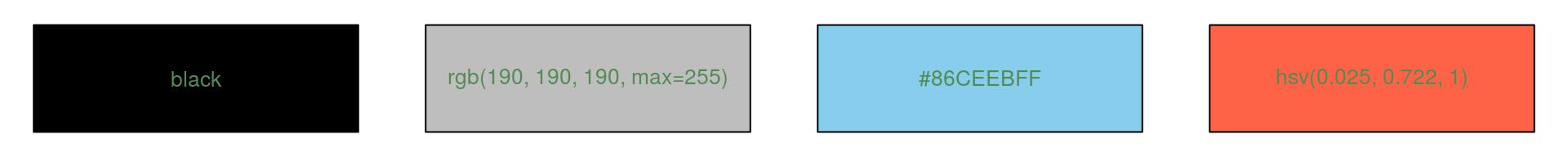 rgb(0, 0, 0) | rgb(190, 190, 190, max=255) | rgb(135, 206, 235, max=255) | rgb(255, 99, 71, max=255) |