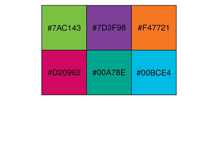 show_col(c("#7AC143", "#7D3F98", "#F47721",